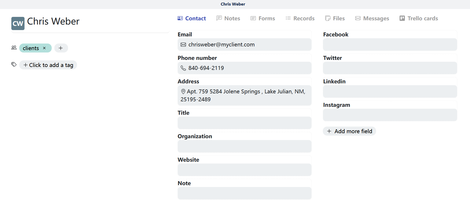 Even more than that, you can add notes and files, create custom forms to store whatever information you need for your business.