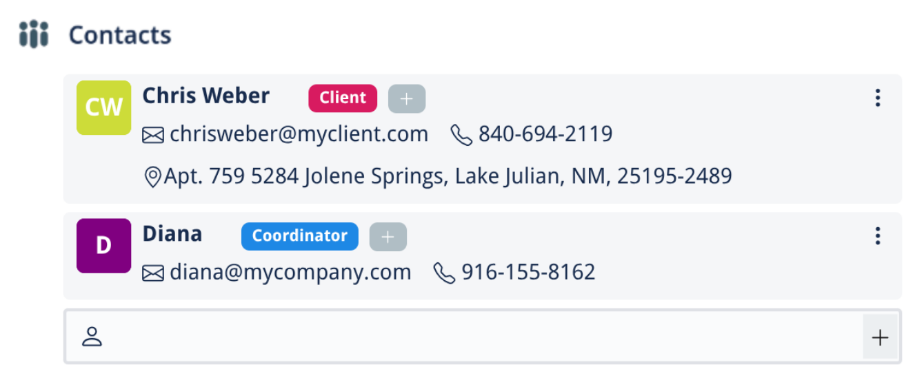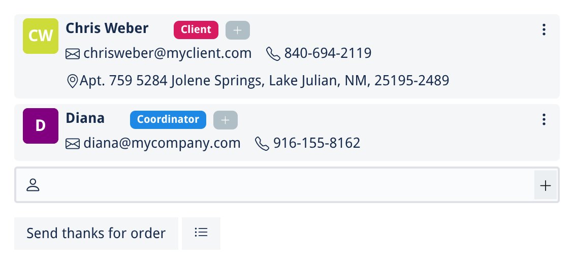 Assign roles (for example, client, designer and contractor...) to your contacts